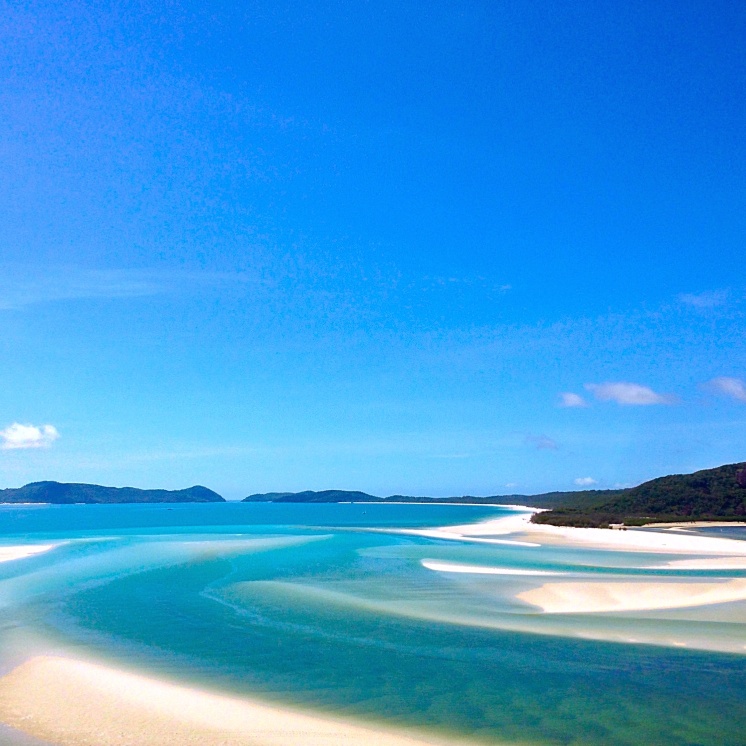 The next day we were up early and given a delicious breakfast before setting off to the famous Whitehaven Beach. This beach’s sand is 98% pure silica. It’s blindingly white and reflects the sun’s heat so well, you can walk bare foot over it and not get burnt.